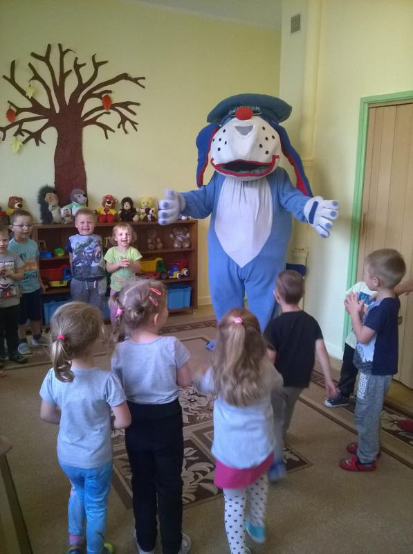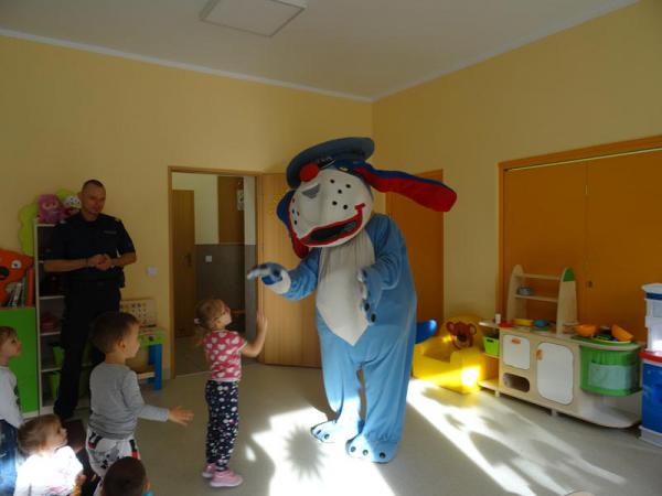 Na zakończenie spotkania pojawił się jeszcze jeden niezwykły gość, a mianowicie Sznupek – czyli maskotka Śląskiej Policji, który sprawił dzieciom wiele radości.