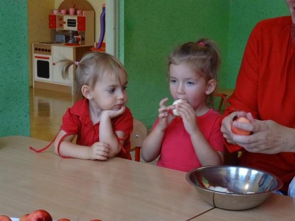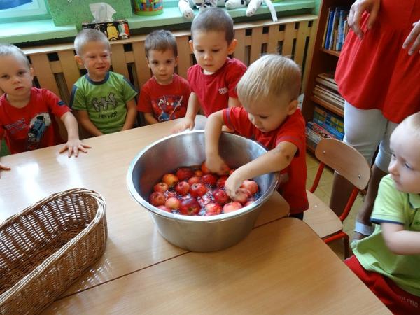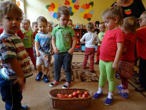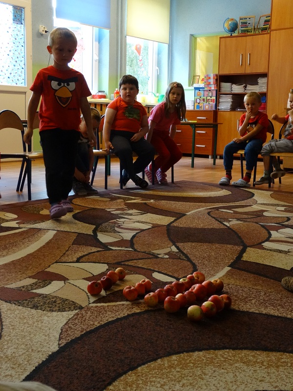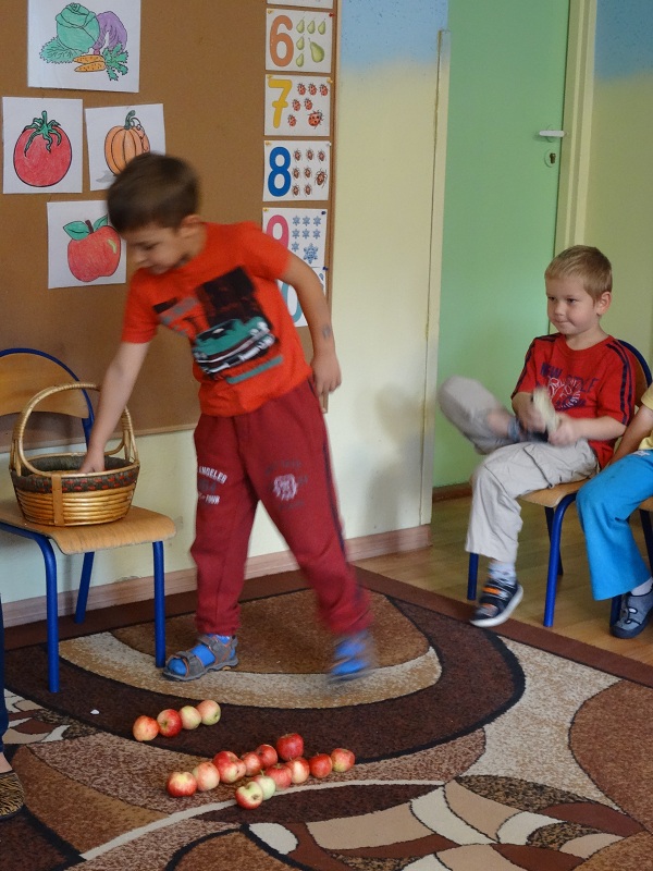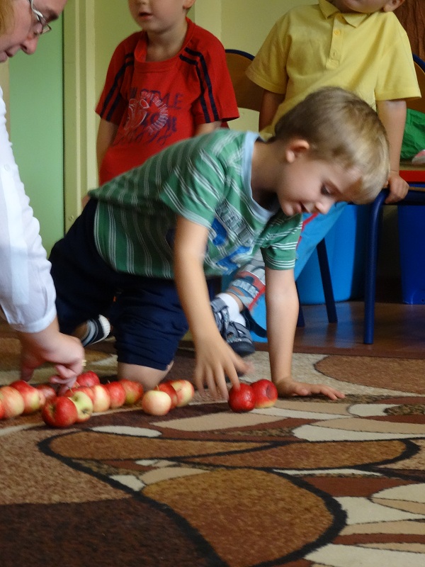 Idąc do domu dzieci mogły zabrać tyle jabłuszek, ile pomieściły w rączkach…:)