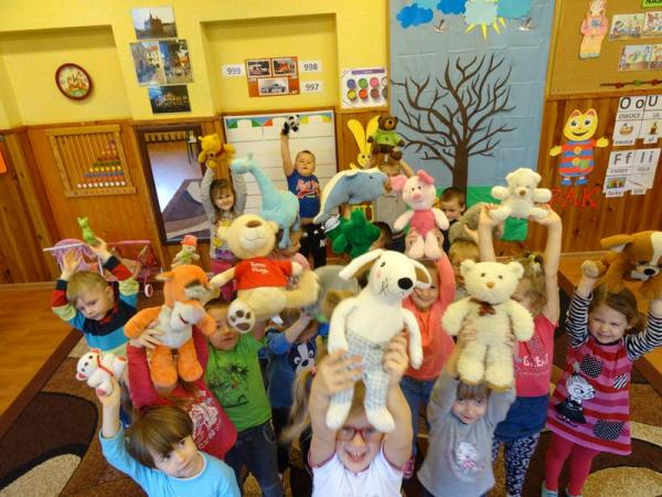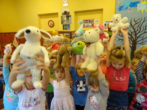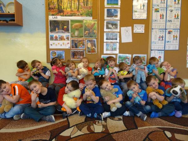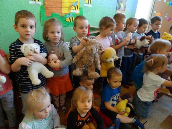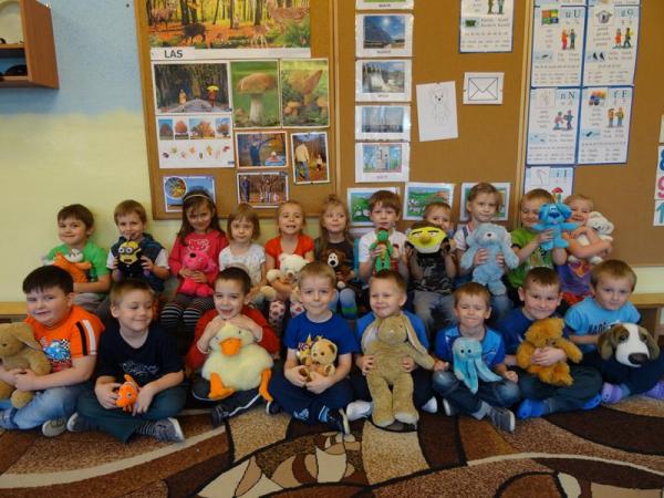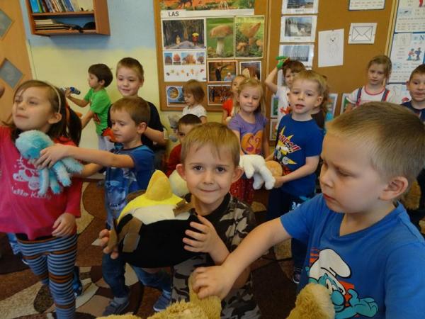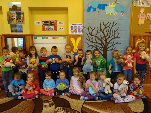 Przedszkolaki zostały zaproszone do wspólnej zabawy w misiowej krainie. Poznały historię święta, wspólnie recytowały wiersze o misiach, bawiły się przy piosenkach i wesołych zabawach. Każdy przedszkolak mógł tez opowiedzieć kilka słów o swoim pluszaku. A na koniec każda grupa ustawiła się do pamiątkowego zdjęcia.