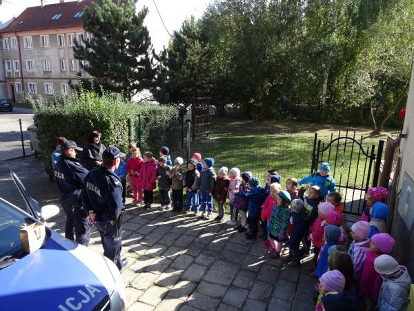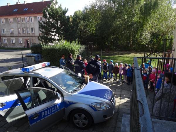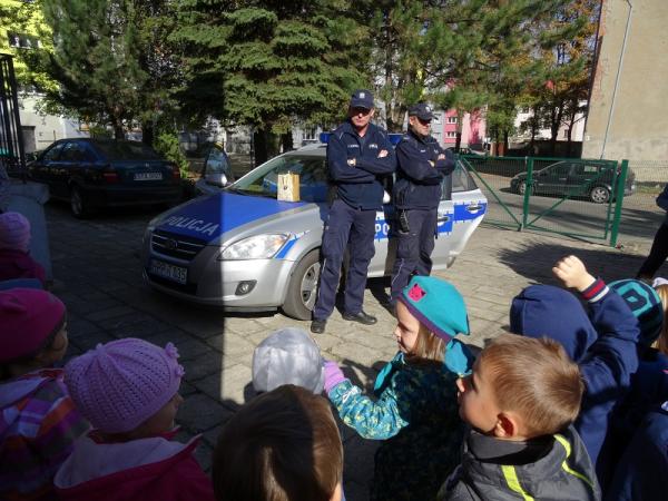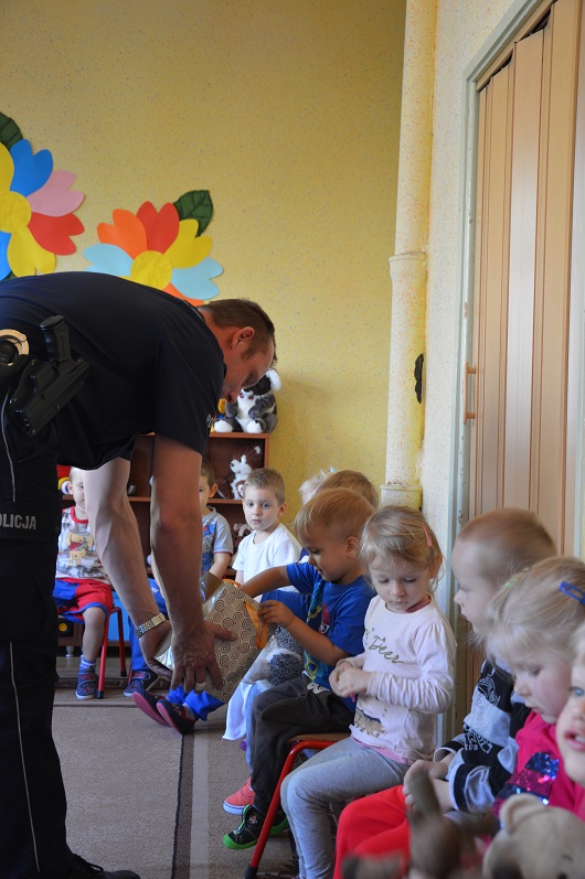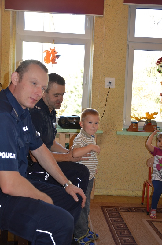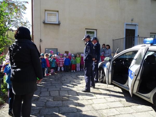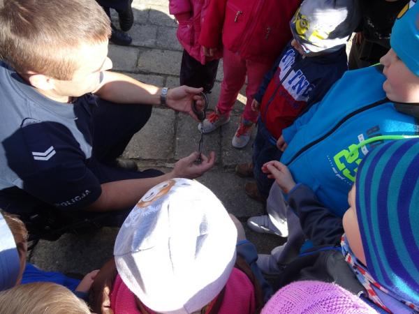Duże zainteresowanie u dzieci wywołało oczywiście umundurowanie i wyposażenie policjantów – czapka, policyjny lizak oraz znane wszystkim kajdanki. Niemałe wrażenie zrobił również na dzieciach prawdziwy policyjny radiowóz, który dzieci mogły zobaczyć z bliska.