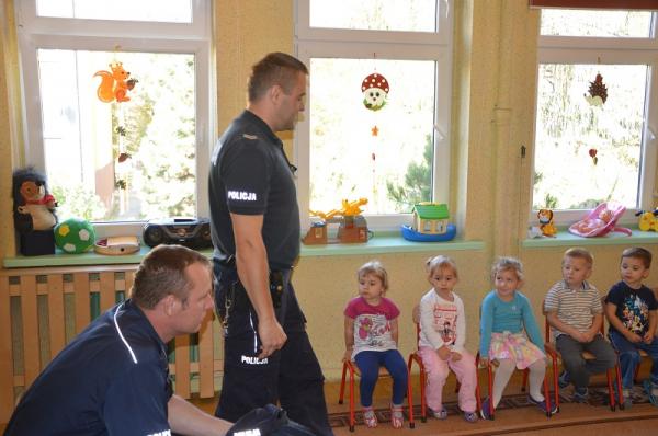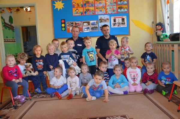 Dnia 01.10.2015r. przybyli do naszego przedszkola policjanci z Komendy Powiatowej Policji w Tarnowskich Górach.